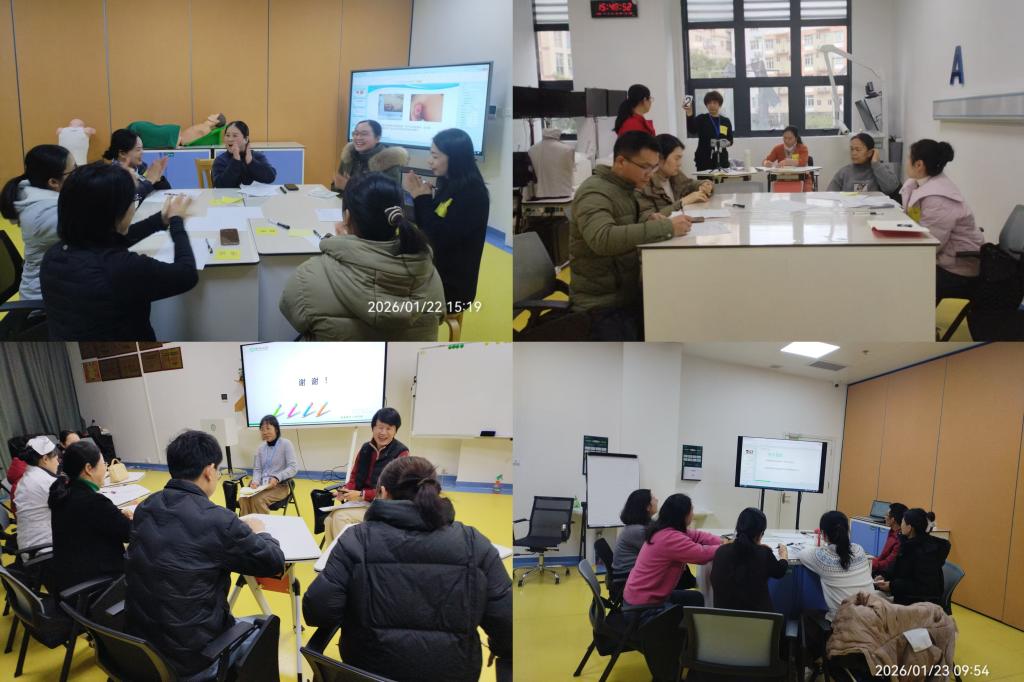 培训全程采用工作坊形式,紧密围绕临床教学实际需求,设置了“教案撰写”“课件制作”“BOPPPS教学”“临床技能操作床旁教学”及“教学查房”等专题内容。为促进理论向实践转化,切实提升课堂教学实效,参培教师分为10个小组,在引导员带领下进行了两轮模拟教学演练。同时,培训团队还对附属贺州医院的院内师资进行了教学评价体系、教学设计及引导技巧等方面的专项训练,为该院后续培育院级培训师、组建教学督导队伍奠定了重要基础。