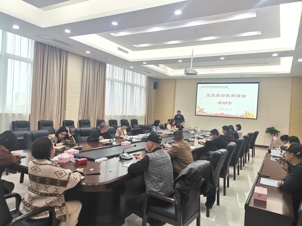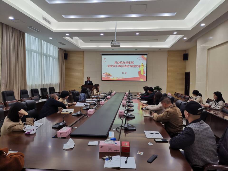 3月26日下午,党办院办党支部在明德楼502会议室召开党史学习教育会议。会议由党支部书记彭靖主持,支部全体党员同志和入党积极分子参加会议。