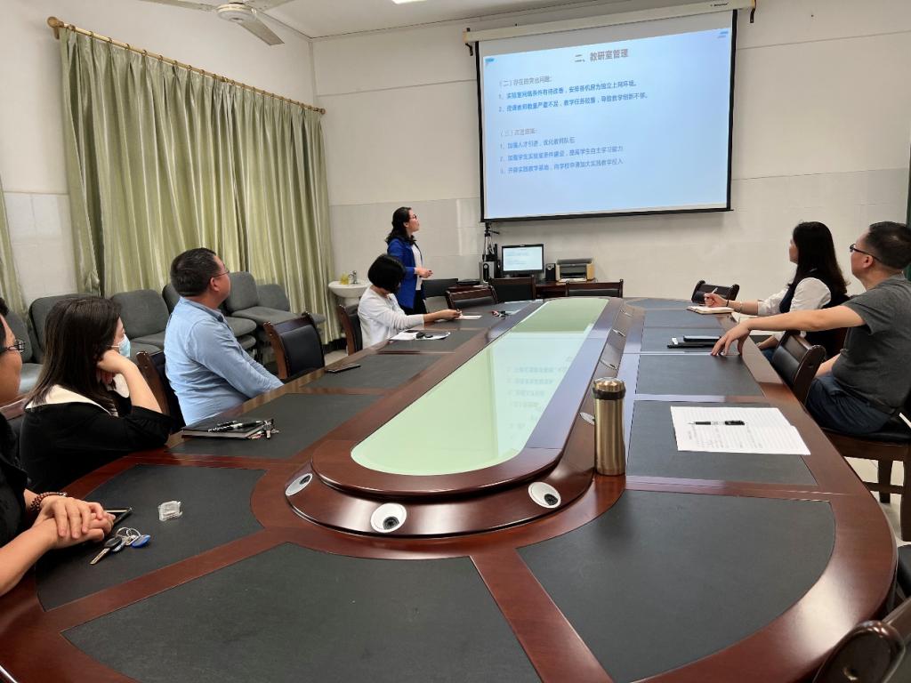 为做好桂林医学院2021-2022学年下学期期中教学检查迎检工作,强化教学常规管理,促使常规工作细致化、规范化,5月6日下午,由公共卫生学院谭盛葵院长、贝春华副院长和各教研室负责人组成检查小组,开展期中教学自查工作。