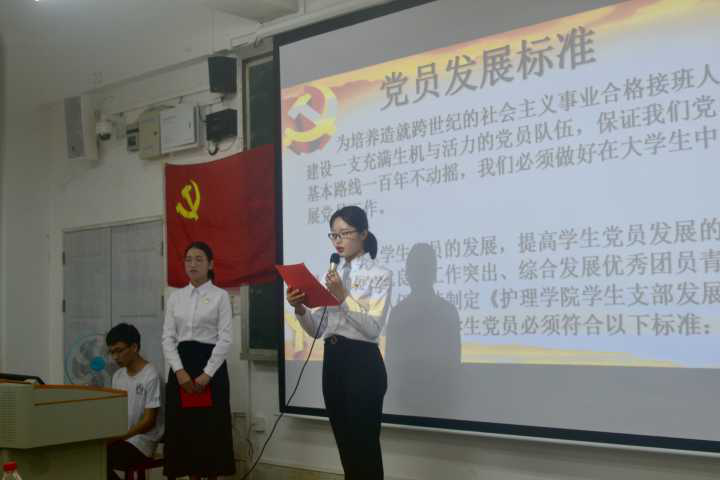 会议最后,唐小平副书记在讲话中对新发展及转正党员表达了祝贺,点评了此次会议并提出希望:一是希望同学们加强学习,坚定理想信念,不忘初心、牢记使命,矢志不渝全心全意为人民服务;二是希望同学们认真履行好党员的责任和义务,从点滴做起,做合格的共产党员;三是希望党员同学们在学习、生活中发挥好模范带头作用,为桂林医学院“更大、申博”和护理学院“申硕”工作做出应有贡献。