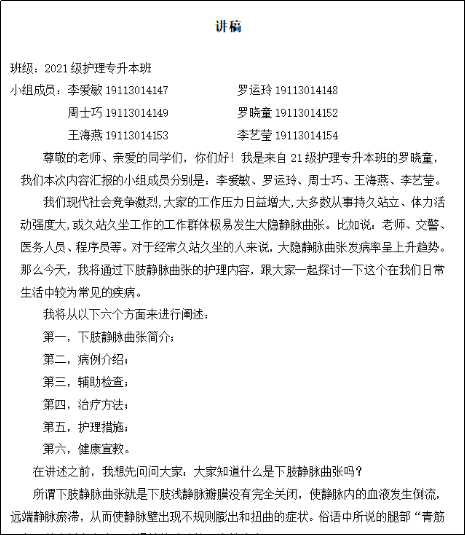 本次《护理教育学》考核的对象为2021级护理本科学生、助产学生和护理专升本学生。考核方式为:各班级以小组为单位制作有关护理教学的微课视频、ppt和撰写教学设计及讲稿,并进行评奖予以颁发奖状。参与评审的教师本着认真负责的态度和公平公正的原则,严格按照评分标准进行评审,最终选出6个一等奖作品,12个二等奖作品和近20个三等奖作品。