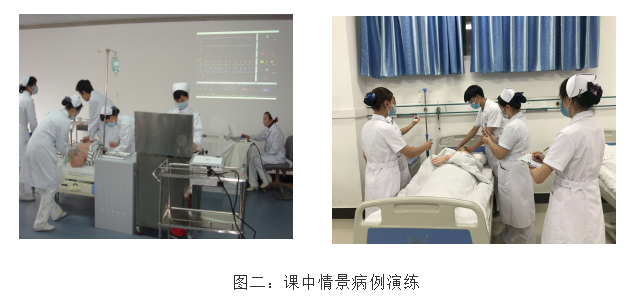 本学期,受疫情影响,护理学基础教研室《护理学基础》课程在获得2019年自治区级一流本科线上线下混合式课程的基础上,更新教学理念,依托雨课堂教学工具、微信公众平台、中国大学慕课等现代信息化网络平台,创新综合情景演练模式,即采用“一中心、三环节、四步曲”的教学模式,秉承“以学生发展为中心”的教学理念,采用线上线下混合式教学,延展学生学习的时间和空间,拓宽学习的深度和广度,提高学生的综合能力。具体做法是:一中心,教师引导,以培养学生临床综合应用能力为中心。三环节,课前预习,课前通过QQ群、雨课堂发布学习任务,引导学生线上自主学习,通过微信公众号观看护理技能操作视频,对情景演练案例进行集中讨论、设计及操作练习;课中课堂导学,结合任务驱动教学法,学生通过小组合作进行学习,整个课堂设为四个学习任务,一是汇报小组病例讨论结果,二是根据病例进行综合情景病例演练,三是观摩、评价其他小组演练,四是对演练进行总结和评价;课堂教学和课后巩固提高,课后针对演练中出现较多的问题或错误,老师给予专项辅导。全天候开放实验室,学生结合线上视频自主练习,巩固技能,实现技能的提升。四步曲,组建教学团队、编写情景案例、进行课堂设计和实施课堂教学。