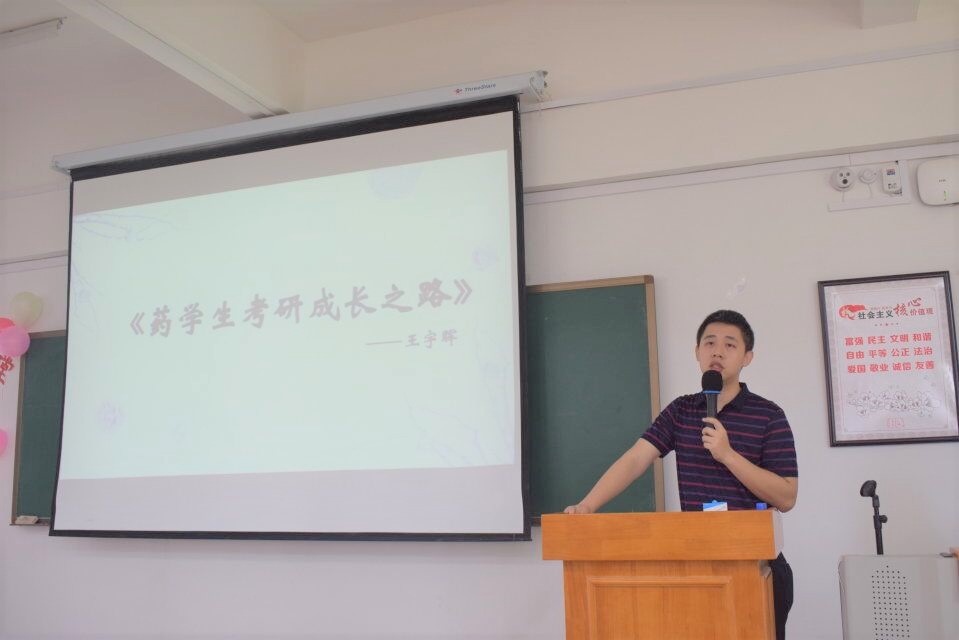讲堂上,王宇晖博士带来了题为《药学生考研成长之路》的专题讲座。他结合自身成长经历,通过生动而具体的事例,就备战考研过程中如何选择报考学校、专业方向、导师等问题进行了解析;药学院2015级考研优秀学生代表郭荫娟、陈鹏、罗爱林、魏承琼从不同角度分享了自己的考研历程,从考研时间的安排到具体科目的复习方法,从考研材料的收集到考研心态的调整等,都为大家做了详细的阐述。现场提问环节,师生们就关心的问题,进行了面对面的交流,现场氛围轻松愉悦。谭钦刚副书记对同学们在易班上提出的问题给出了解答,同时也希望大家珍惜韶华、主动学习,在校期间不断努力提升专业素养,以更强的自信面对将来的考研或就业。