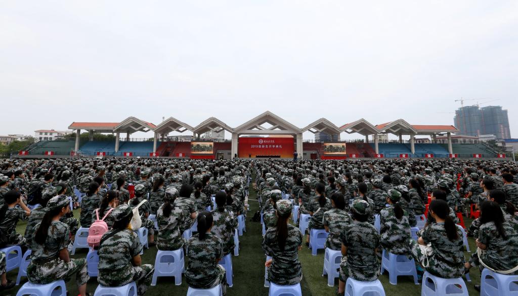 首先,冯天瑾宣读了成立2019级大学生军训团的决定,特别强调,军训期间要严明纪律,高度重视军训安全工作,严防各类事故发生。