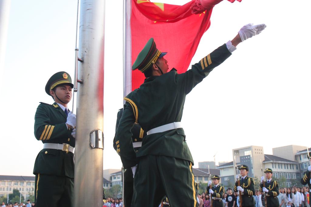 为庆祝中华人民共和国成立70周年,10月1日上午,我校在临桂校区旧足球场举行了“同升国旗、同唱国歌”活动,校团委书记龙亮和2000多名在校生共同参加升旗仪式。