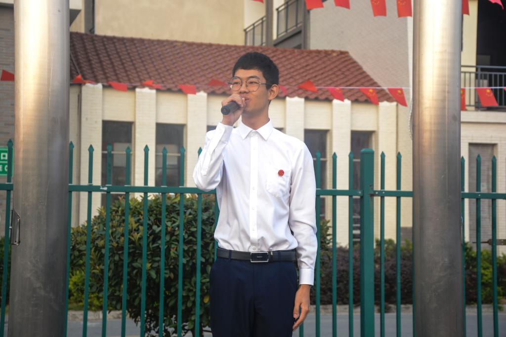 上午7时,全场气氛庄严肃穆,国旗护卫队身着军礼服,迈着整齐划一的步伐走向升旗台。伴随着庄严的《中华人民共和国国歌》响起,鲜艳的五星红旗冉冉升起,现场师生高唱国歌,唱响爱党爱国爱社会主义的时代主旋律,为伟大祖国送上深情祝福。五星红旗迎风飘扬,桂医学子在国旗下庄严宣誓:我志愿献身医学,热爱祖国,忠于人民,救死扶伤,不辞艰辛,为人类身心健康奋斗终生!来自护理学院的欧阳伟同学,以“青春在医学路上闪光”为题做国旗下演讲,激励同学牢记青年学生承担起社会责任感和历史使命感,秉持初心,以青春之名,继续奋勇向前。