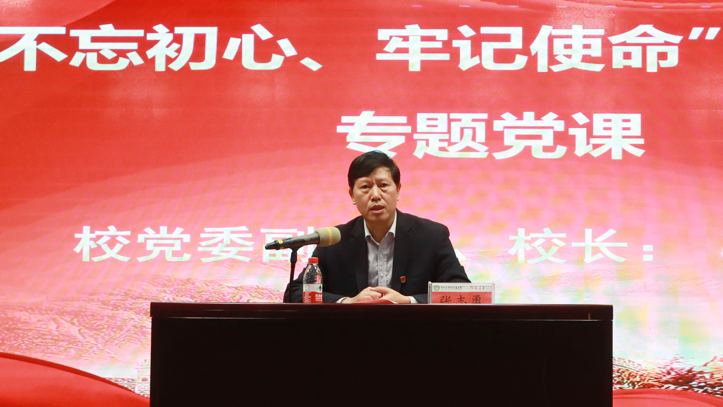 张志勇围绕习近平新时代中国特色社会主义思想和习近平总书记关于“不忘初心、牢记使命”系列重要论述,分别从“共产党人的初心和使命是什么?”“共产党人为什么要不忘初心、牢记使命?”“坚守初心勇担使命奋力推进附属医院高质量发展”等方面,深刻阐述了开展主题教育的重大意义,结合“健康中国”战略,强调了坚持党对卫生与健康工作的领导、坚持以人民为中心的发展思想、坚持人民健康优先发展的重要性。