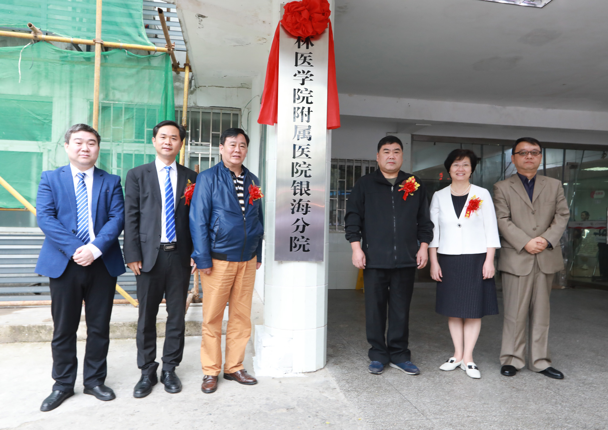最后,李钟江、赵玉林、文琼仙、李清华、尉达飞、张新刚共同为“桂林医学院附属医院银海分院”揭牌。