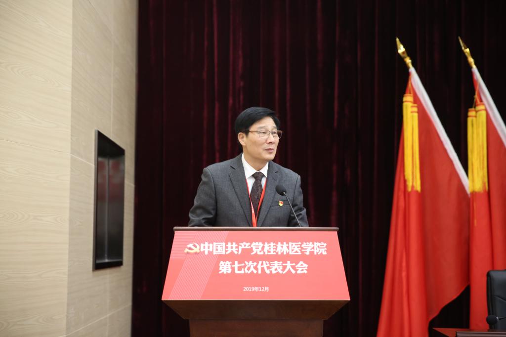 张志勇同志在致辞中指出,中国共产党桂林医学院第七次代表大会的胜利召开,既是我校政治生活中的一件大事,也是学校在新的历史起点上谋划新发展、开辟新境界、实现新突破、迈上新台阶的内在要求,对于学校在新时代跨越式发展具有重要的意义。