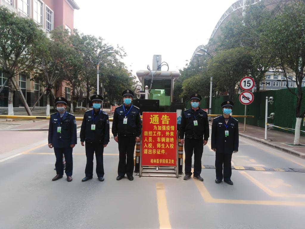 在此抗疫特殊时期,保卫处加强值班力量,两个校区实行干部双人值班。值班干部坚持每日安全检查、巡查不少于3次,严格督导各岗位值守,特别是校门防控。保卫处不仅担负着临桂校区、东城校区各各校门的防控任务,根据学校疫情防控办要求,还担负了东城教职工宿舍区、少爷塘宿舍区的防控任务,队员们每班工作8小时,冒着严寒,昼夜坚守岗位。严格加强入校人员身份甄别、有礼有节劝离无关人员,认真进行出入校门登记、体温测量等等。此外,校卫校巡逻小组、校园视频监控中心各司其职,合力保护校园安全稳定。