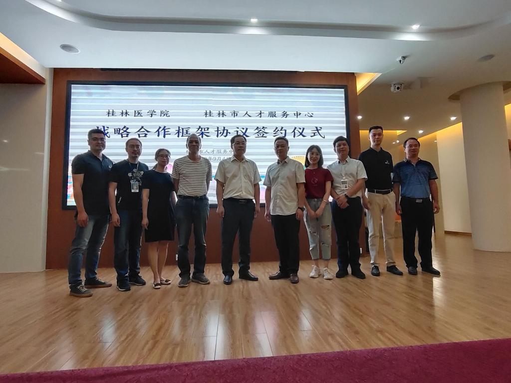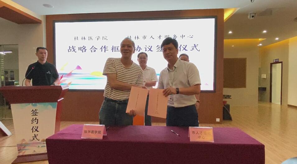为了深入贯彻落实党中央、国务院关于稳就业、保就业的决策部署,坚持就业优先战略,促进毕业生更加充分更高质量就业。9月4日上午在桂林市人才服务中心二楼,签订人才服务战略合作框架协议,学校副院长、组织部长马献力,桂林市人社局副局长朱桂平,招生就业处相关人员,部分二级学院领导以及桂林市人才服务中心相关人员参加了签约仪式。
