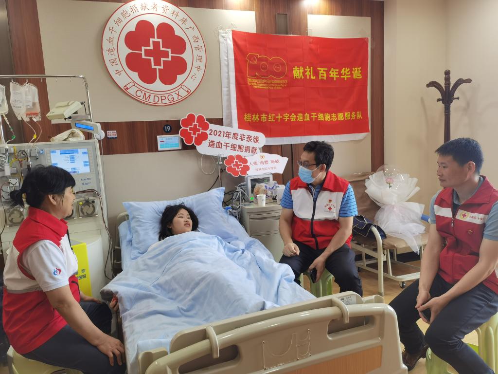 6月15日,在柳州市工人医院造血干细胞采集室内,我校教师梁俏伶成功捐献造血干细胞。她成为全国第11465例,桂林市第43例,桂林医学院第5例造血干细胞捐献者。桂林市红十字会党组书记、专职副会长唐小荣,校团委、护理学院教师代表一同到医院看望慰问了梁俏伶。
