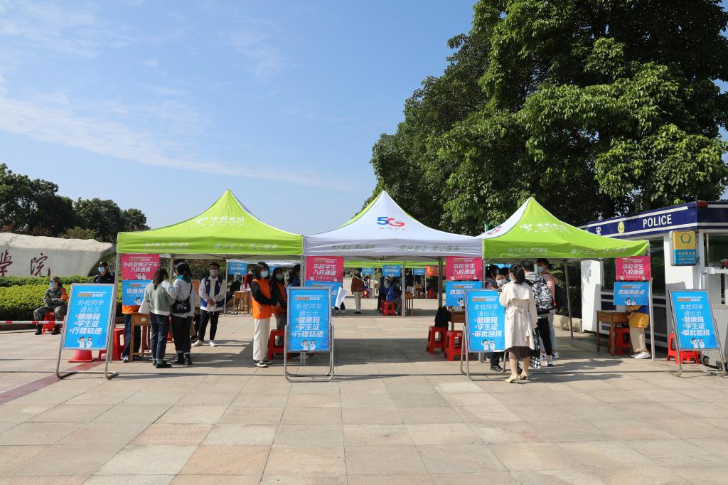 双选会筹备和举办期间,学校对各项疫情防控及安保措施作出了严格部署和周密安排。除在校内外设立入校进场的各类指引标识外,还对参加招聘学生的人流密度、滞留时间、排队间距等进行科学设定,并配备医务观察点以应对突发状况。学校根据疫情防控形势要求,严格按照属地疾控部门要求仅限疫情等级为低风险地区的单位代表入校参会,同时持健康绿码、行程卡,体温测量正常。广西区外的招聘单位代表还需提供48小时内的核酸检测阴性证明方能进校。