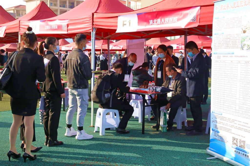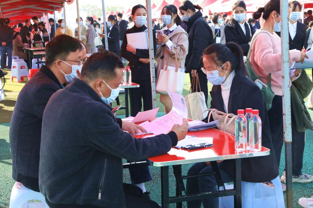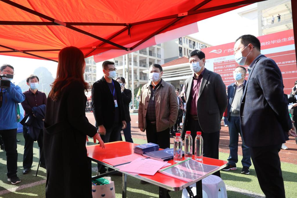 近500家医药卫生类单位进场,2万多个优质岗位虚席以待,5000余名学子应聘……11月13日上午,由自治区教育厅主办、我校承办的2022届广西医药类高校毕业生就业双向选择洽谈会(桂林专场)(以下简称双选会)在我校临桂校区运动场盛大举行。这场首次在桂林举办的全区医药类高校毕业生专场双选会吸引全国51个地市的各级医院、企事业单位参加,对我校精准施策抓好就业创业工作,为毕业生求职提供方便、高效、快捷的人才交流平台和服务通道起到积极的促进作用。