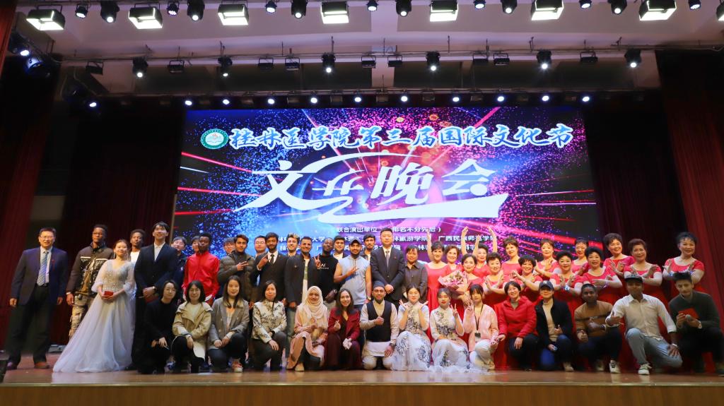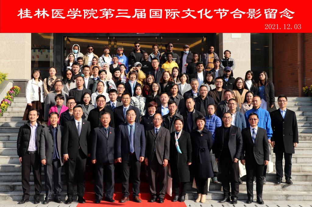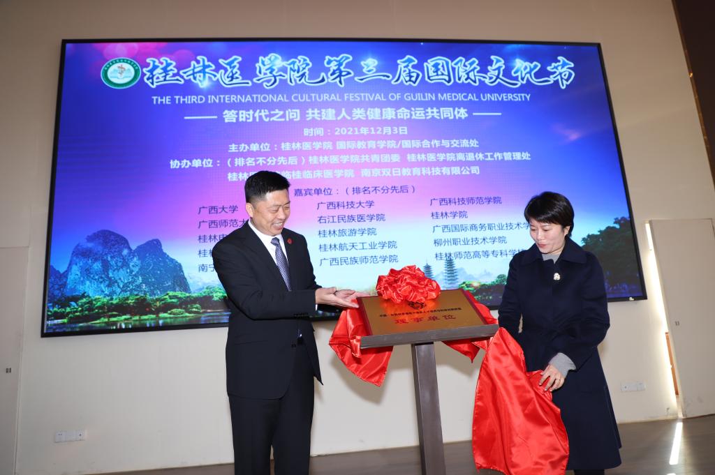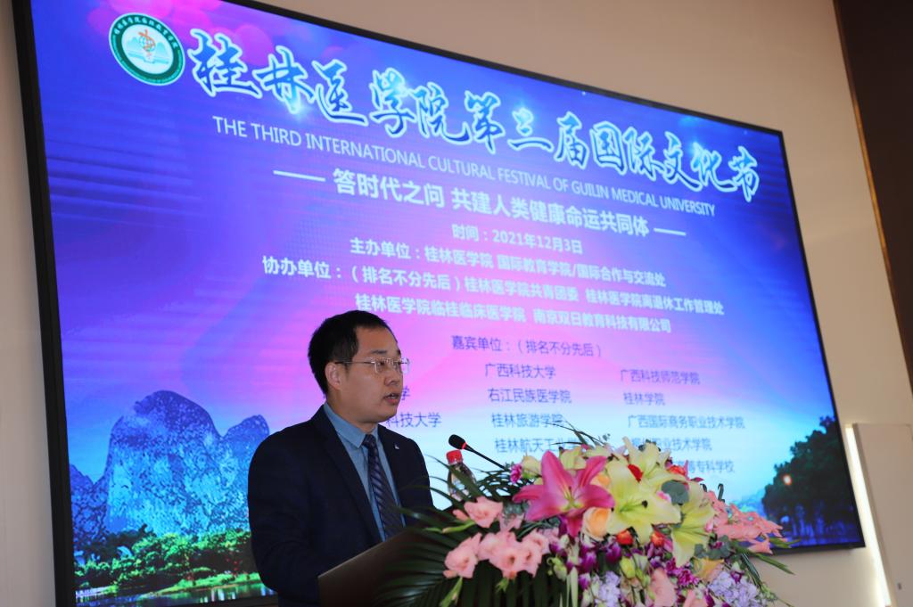 12月3日,我校第三届国际文化节在国际教育交流中心开幕。本届国际文化节以“答时代之问•共建人类健康命运共同体”为主题。桂林市委统战部,桂林市外办,以及15所高校的中外师生代表参与盛会。我校党委常委、副院长、组织部部长马献力,各职能部门及二级学院负责人出席开幕式,开幕式由我校国际教育学院/国际合作与交流处负责人主持。