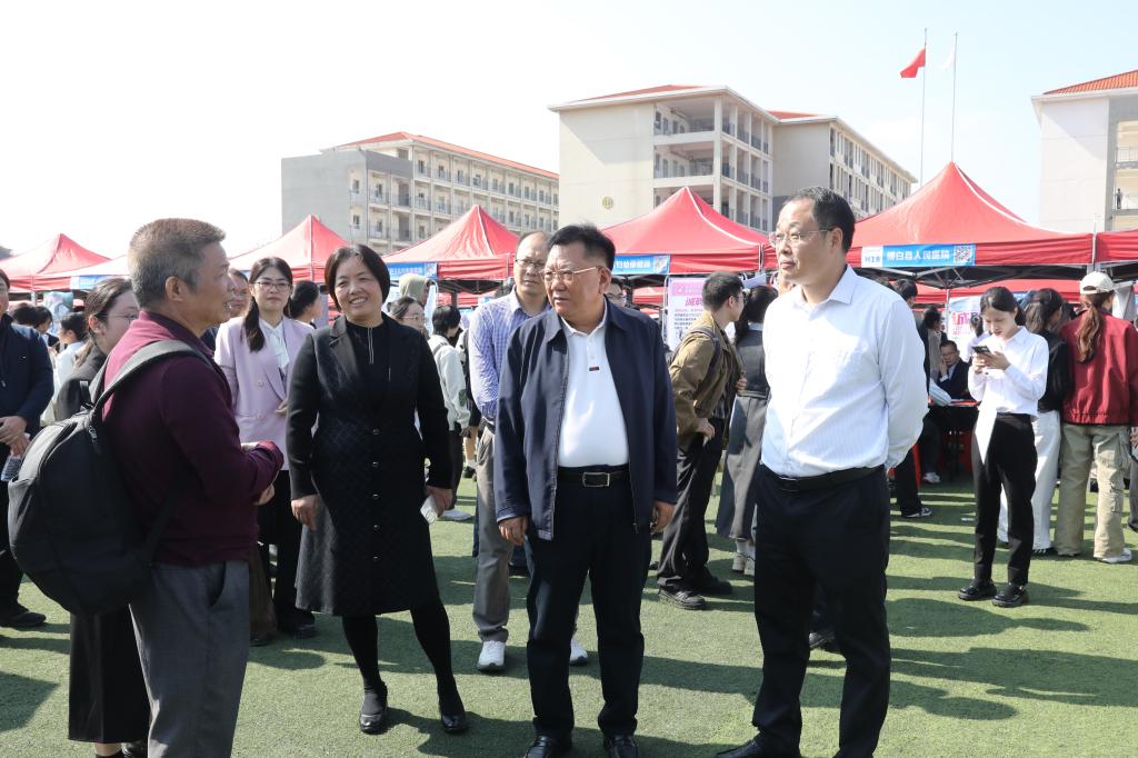 自治区教育厅高校学生处领导和我校领导深入双选会现场调研