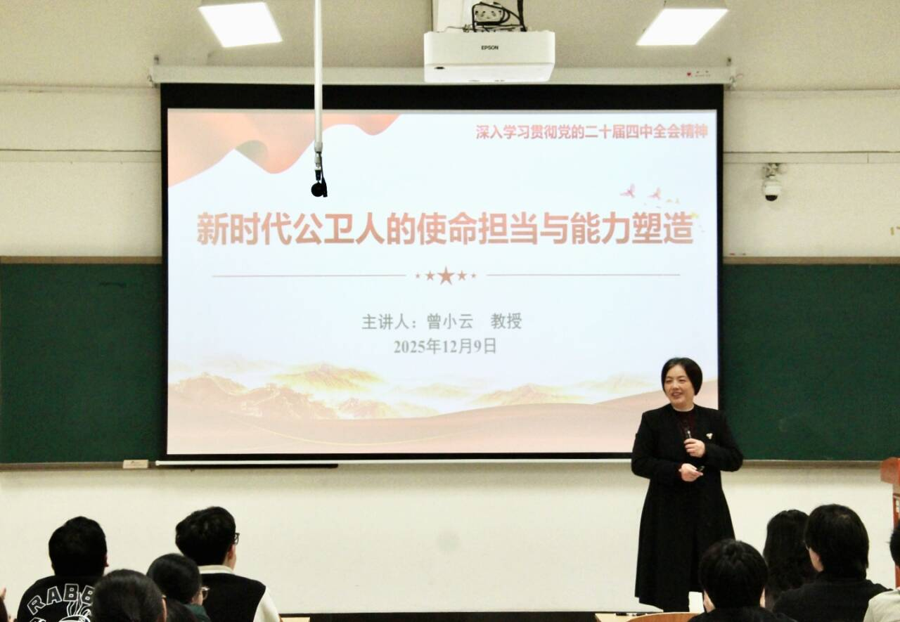 为深入学习贯彻党的二十届四中全会精神,提升公卫学子的政治素养与专业使命感,12月9日下午,学校党委副书记、校长曾小云在临桂校区崇德北楼104为公共卫生学院2023级预防医学本科班全体学生和学生第三党支部讲授题为《新时代公卫人的使命担当和能力塑造》的专题党课。