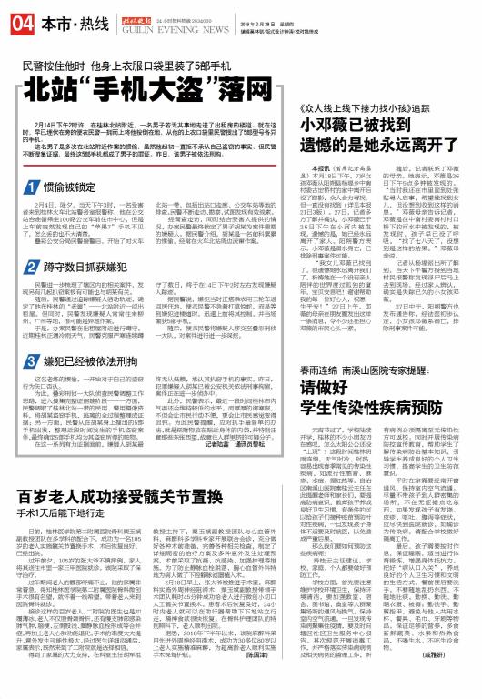 【桂林晚报】百岁老人成功接收髋关节置换 手术后一天能下地行走