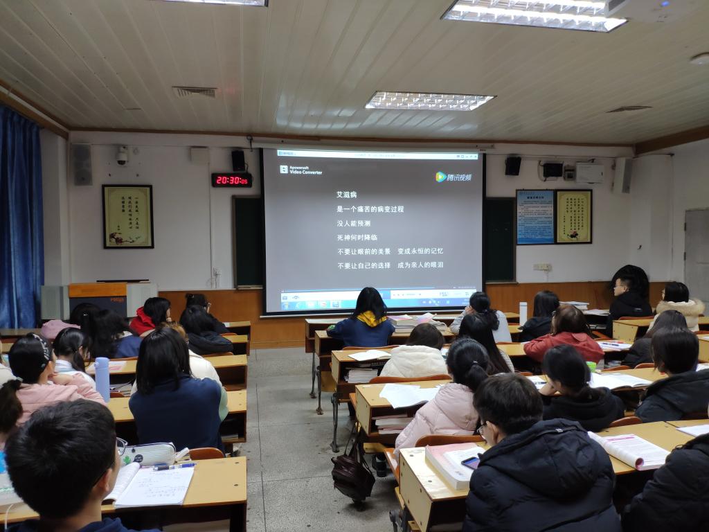 为使同学们更直观地了解艾滋病,班会以观看防艾宣传片——《生命的断层》的形式,让同学们了解艾滋病的各种传播途径和预防艾滋病的基本知识。辅导员高小玲教育同学们要珍惜生命,要培养健康的生活理念,保持健康文明的生活方式,提高自我保护意识,有效预防艾滋病,加强建设健康、文明、和谐校园的责任意识。