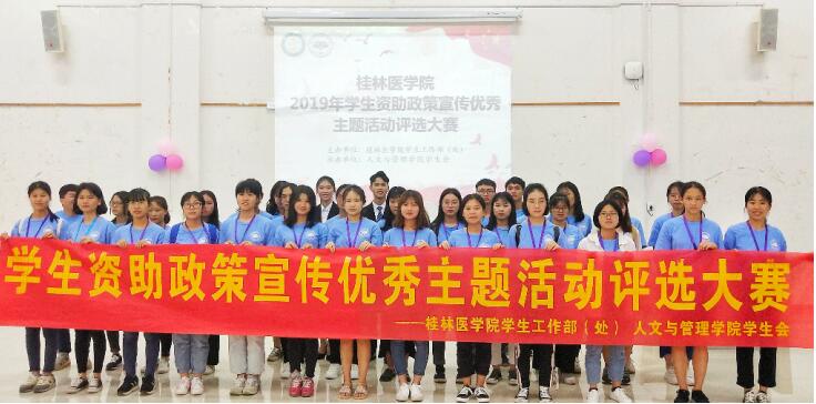 为了宣传学生资助政策,使广大学生更深切的感受到国家对大学生的重视与关心,提升我校资助育人成效,由桂林医学院学生工作部(处)主办、人文与管理学院承办的桂林医学院2019年学生资助政策宣传优秀主题活动评选大赛,于2019年5月28日晚19点在大活二楼小型报告厅成功举办。学生工作部(处)副部(处)长黄月圆、资助中心莫荣妹、各二级学院负责资助工作的老师受邀出席本次比赛并担任评委。
