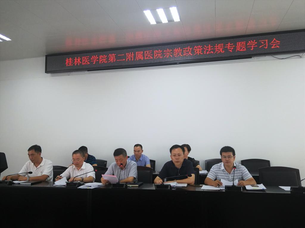 为了更好的贯彻执行党的民族宗教政策, 7月1日下午,第二附属医院在9号楼2楼会议室举行了宗教政策法规专题学习会,医院领导、全体中层干部共同参与了学习。本次会议由党委书记宋剑非主持。