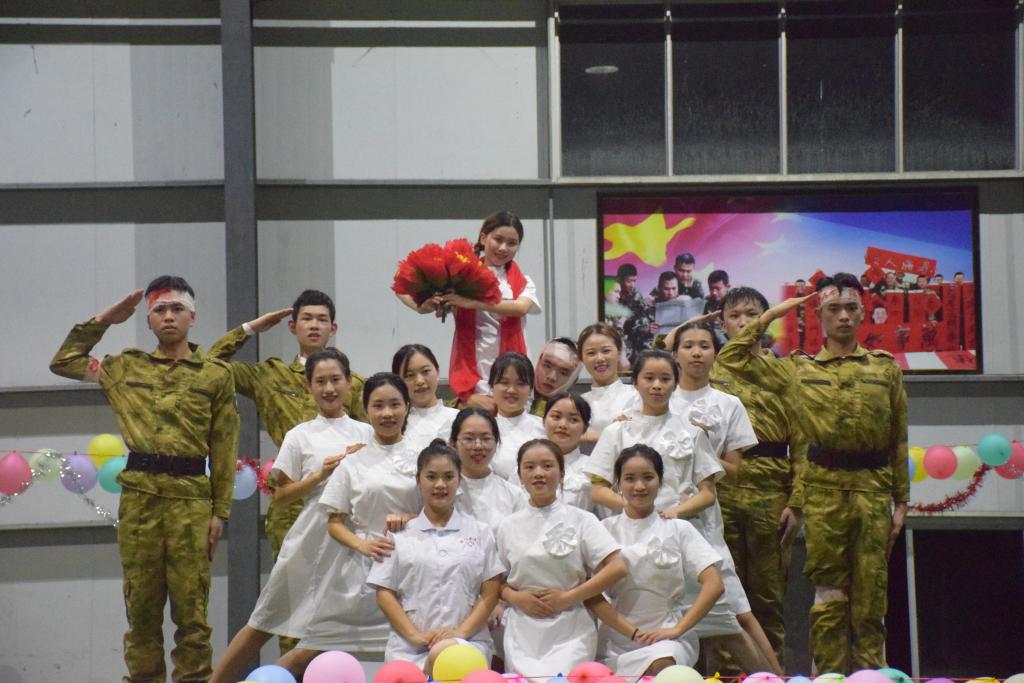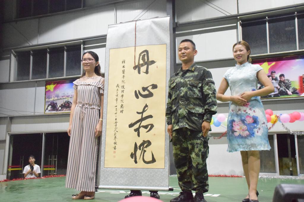 为营造“军爱民、民拥军”的新型军民关系,军民鱼水大联欢在暴雨中拉开序幕。《不忘初心,继往开来》,军人护生倾情合作,一声声颂词是对祖国最衷心的祝愿;战士们刚劲有力的《匕首操》和《武术》展示,演绎军旅男儿的热血与豪情,真切感受到军人的铁骨铮铮;圣洁艺术团的《医路芳华》歌颂护理人的德善初心,谱写了一首医路战歌;全场齐声《团结就是力量》唱出威严气势,尽显军护鱼水情。尾声一幅书法作品“丹心赤忱”承载着护理学子对人民子弟兵的崇高敬意,延续着军爱民、民拥军鱼水深情的夙愿。