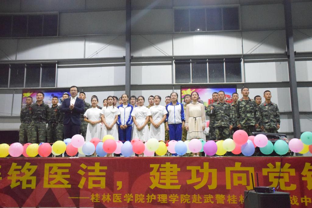 为深入贯彻习近平新时代中国特色社会主义思想,践行党的十九大精神及 “双拥”精神,深刻领会新时代强军梦,2019年7月12日,桂林医学院护理学院暑期社会实践团队围绕红色教育、急救知识进军营、慰问演出等主题模块,深入武警桂林支队特战中队开展“笃训行善铭医洁,建功向党铸军魂”主题系列活动。
