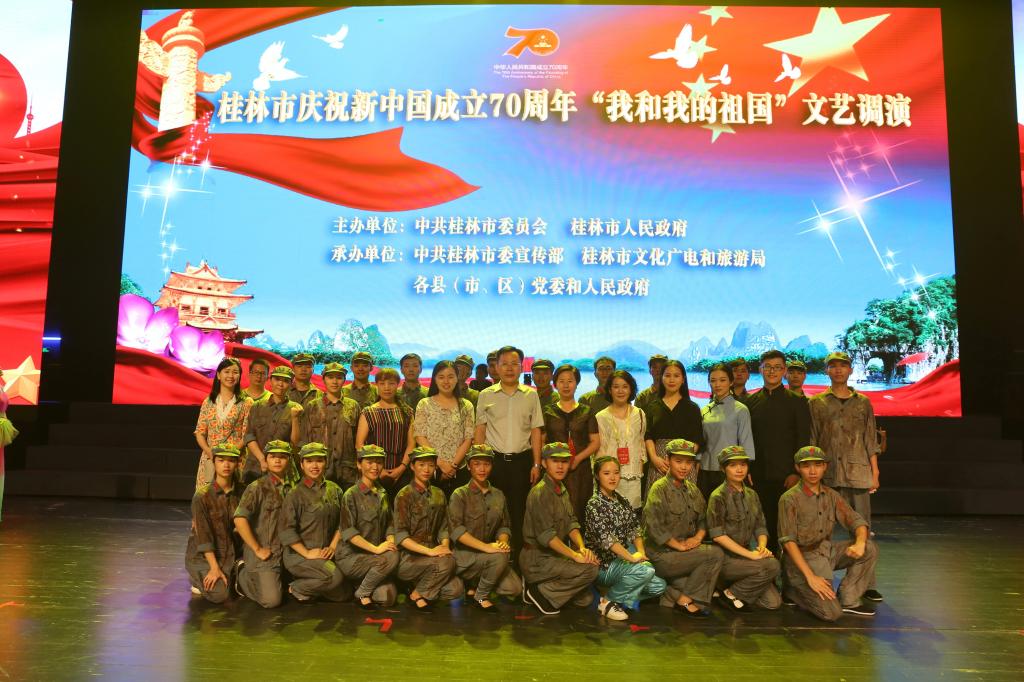 8月18日,桂林市庆祝新中国成立70周年“我和我的祖国”文艺调演桂林卫生健康委系统专场演出在桂林大剧院完满落幕。来自桂林卫生系统各单位和各区直医院等单位齐聚一堂,共同用精彩的节目献礼祖国70周年华诞。当天的演出充分展现了当代医务工作者的精气神,受到现场观众的热烈欢迎。