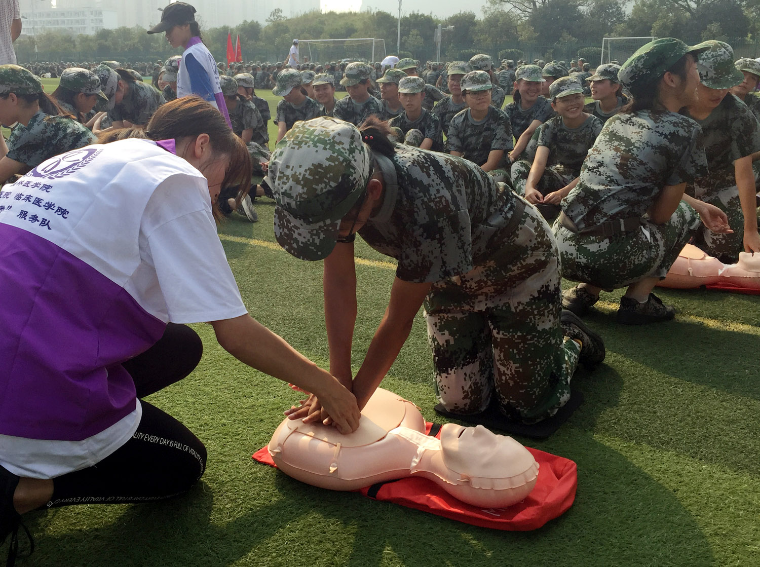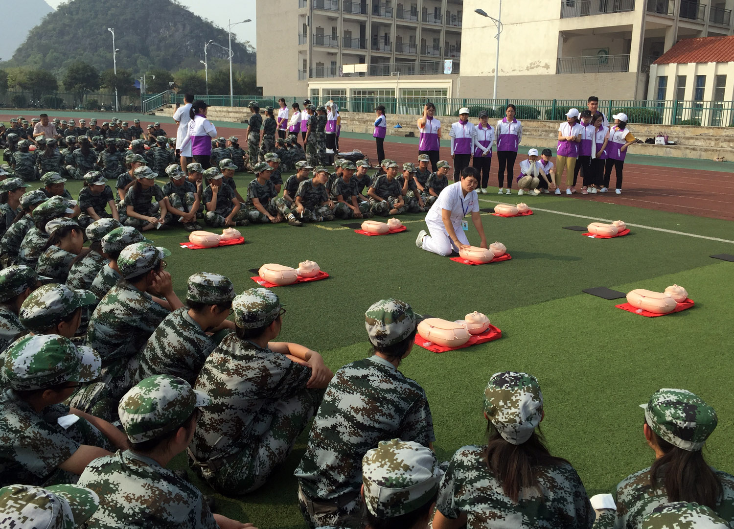 此次培训由附属医院急诊医学科主任富学林、临床教学培训中心副主任陈军宁,第二附属医院急诊科主任徐宝灵,护理学院教学与科研管理科科长韦艳春等20余名临床医师、护士进行授课,100多名获得相关培训合格证的医学生志愿者参与演示和指导新生操作。