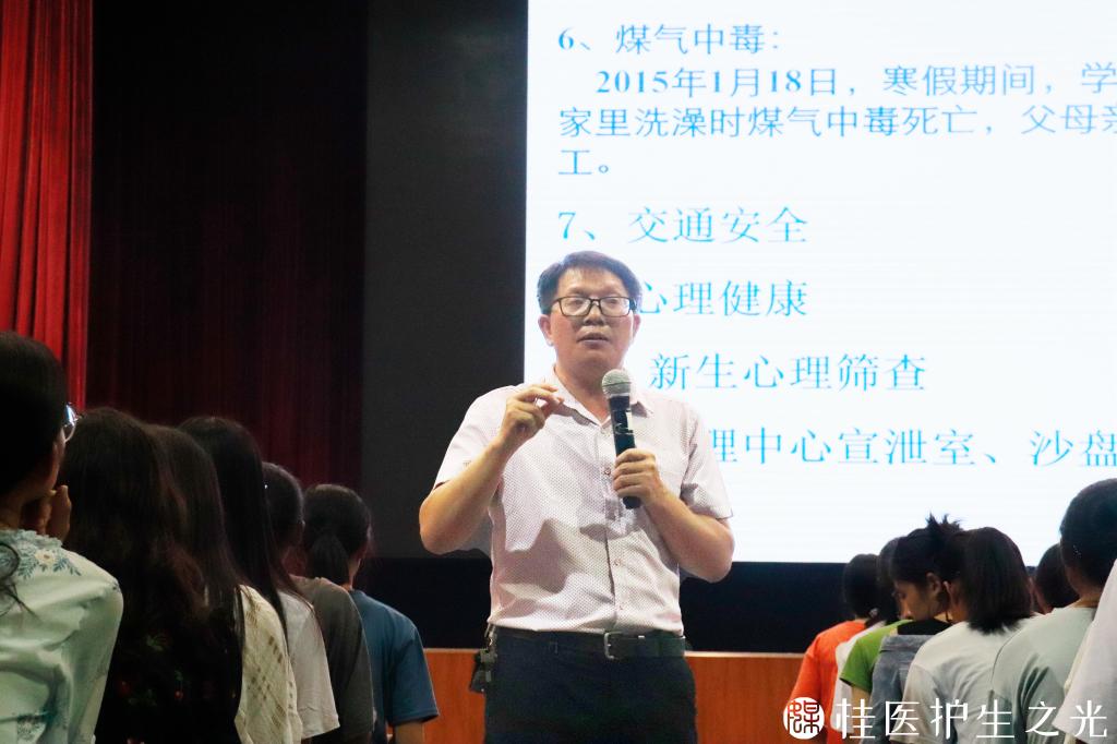 为帮助新生适应大学生活,使其尽快转换角色,科学规划大学生活和职业生涯,9月15日晚,护理学院在临桂校区大学生活动中心四楼开展2019级新生入学教育讲座,护理学院党委副书记唐小平主讲,近750名2019级新生参加讲座。