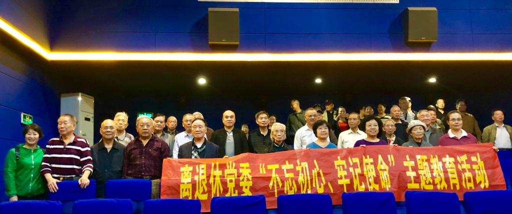 为深入开展“不忘初心、牢记使命”主题教育,开展爱国主义教育,10月21日上午,离退休党委组织离退休党员、离退处在职党员40多人集中观看了《我和我的祖国》爱国主义影片。