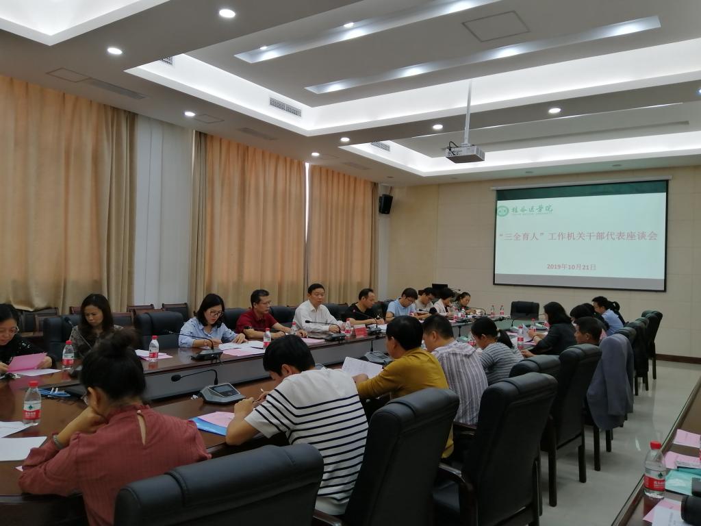 10月21日下午,在临桂校区明德楼502室,校党委副书记齐俊斌与21名机关干部代表围绕“三全育人”工作进行座谈。校“三全育人”工作领导小组办公室成员参加座谈会。