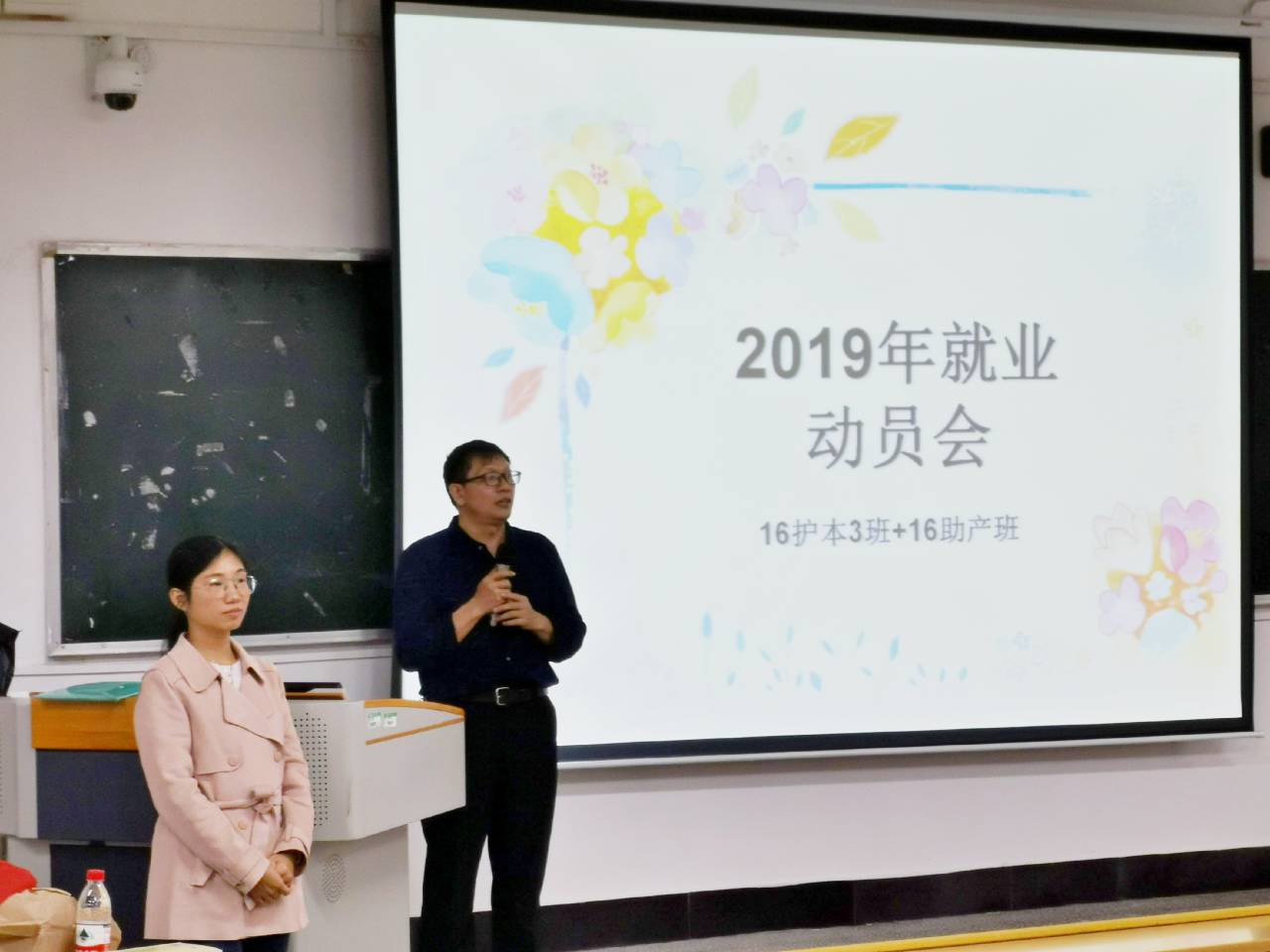 动员会上,副书记唐小平、副院长李勇和科长韦艳春分别用详实的数据和鲜活的案例,为毕业生分析了2020届护理专业就业形势,介绍了用人单位特别是专场招聘医院情况和招聘信息,从着装、化妆、礼仪、人文和介绍等应聘技巧方面进行了指导。对同学们提出了温暖的期望,鼓励同学们树立正确的就业观、择业观;要自信、抓住机遇,主动就业;放宽视野,不局限于某一医院、某一区域或某一行业,以最好的状态迎接面试。最后,各班毕业班辅导员向同学们强调了就业安全、就业程序流程、就业手续办理、就业注意事项等。