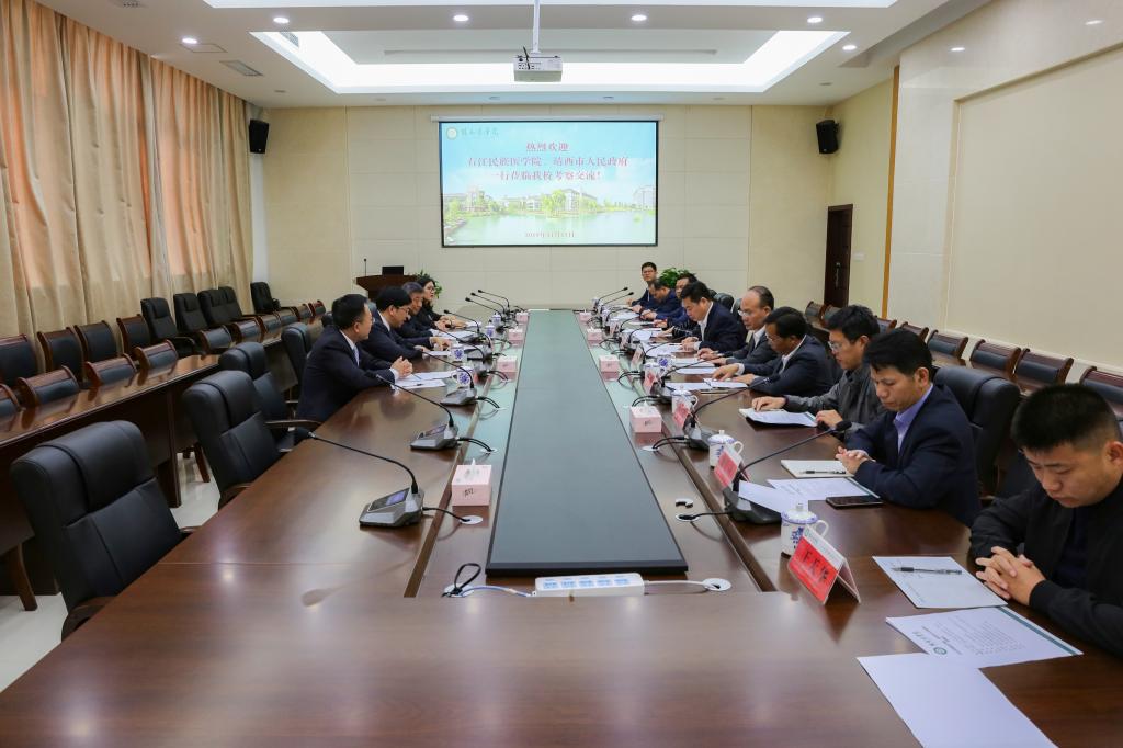 会上,黄照权对唐乾利、黄振文一行的来访表示热烈欢迎,介绍了我校的基本情况,分享了我校建立第二附属医院的经验和做法。唐乾利、黄振文分别介绍了右江民族医学院的教育教学和附属医院建设情况,以及靖西市医疗卫生事业的发展情况等,希望通过此次交流,进一步加快右江民族医学院附属靖西医院的建设。第二附属医院院长葛波详细介绍了第二附属医院目前的建设和发展情况。双方与会人员围绕建设直属附属医院、教学科研、学科建设、人才培养等方面进行了深入交流与探讨。会后,考察团一行到第二附属医院参观考察。