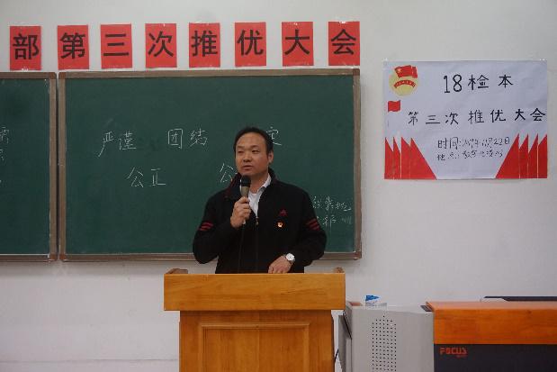 为加强我院党员队伍建设,增强党的新生力量,激发广大团员政治热情。11月22日晚,医学检验学院18检本班于临桂校区教学北楼N103召开示范性推优大会,学工处处长兼18检本班班主任胡友根,学工办副主任兼18、19检本班辅导员,18、19检本团支部全体成员参加此次会议。