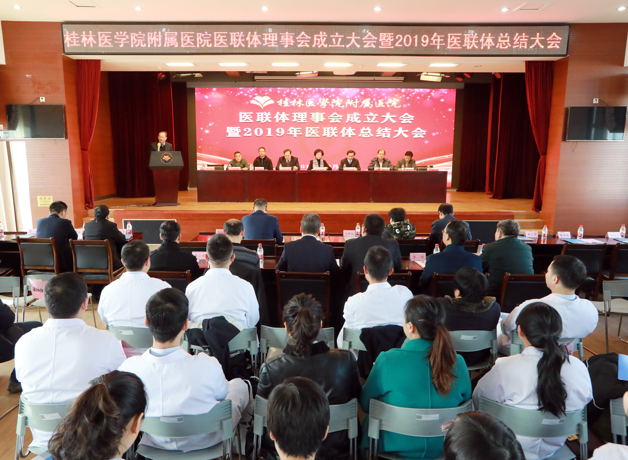 12月27日下午,附属医院在综合楼六楼多功能厅召开医联体理事会成立大会暨2019年医联体总结大会。医院党委书记文琼仙,院长李清华,秀峰区、灌阳、全州、恭城等县(区)的卫生健康局领导莫文华、蒋增进、赵瑞文、蒙全斌,以及我院在院领导、六家医联体成员单位相关负责人、医院相关科室中层正职干部出席会议。副院长曾锦荣主持大会。
