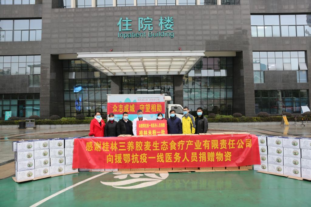 自1月27日广西援鄂抗疫医疗队驰援武汉之后,队员们在抗疫一线的情况时时刻刻牵动着家乡群众的心。2月4日,第二附属医院联合桂林三养胶麦生态食疗产业有限责任公司(以下简称三养公司),筹集160箱桂林米粉向武汉输送,为广西援鄂抗疫医疗队送去来自家乡的关怀和牵挂。