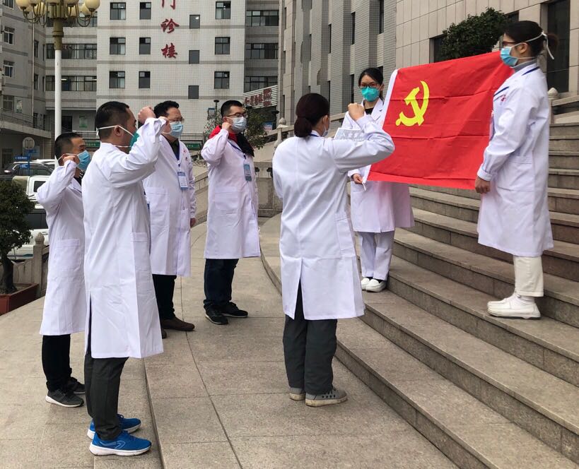 重温入党誓词。2月13日,医疗队初到湖北十堰市竹山县,支部5名正式党员重温入党誓词,党旗所向,铮铮誓言,坚定了全体党员抗疫必胜的信念。