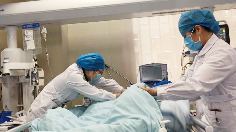 邹先生搬进新启用的呼吸ICU,并接受治疗