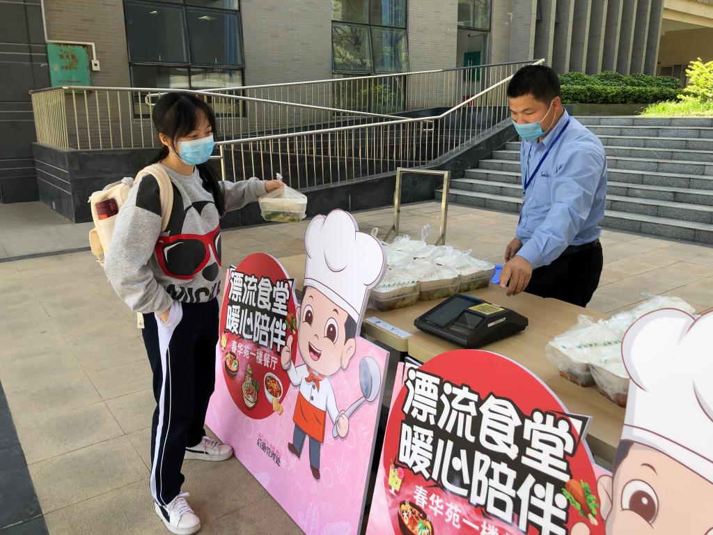 为将分流、错峰就餐落到实处,减少人员聚集,食堂实行套餐制,大幅提高打餐效率。为避免套餐的单调,食堂班组提前计划,上网公布,每餐更换菜谱,并在晚餐时段根据实际情况增加选餐,与套餐形成互补,丰富师生的用餐选择。同时,膳食科主动思考服务创新,制作就餐流程小视频,引导广大同学严格按照防控要求就餐。在大学生活动中心设置“漂流食堂”,安排2个食堂班组每天中午12点半起通过“漂流食堂”售餐,为师生提供便利。开学至今,已有近200学生因疫情防控需要先后入住健康观察室,膳食科为他们解决一日三餐,送餐上门服务,直到学生解除观察。