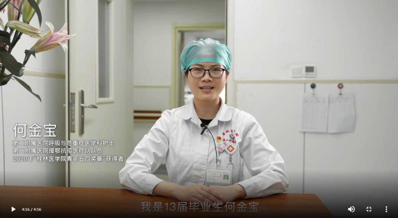 为激励广大青年,弘扬青春正能量,学习新时代好榜样,援鄂医疗队青年代表重症医学科副护士长、医疗队副队长罗丹桂、呼吸与危重症科医生银建华、呼吸与危重症医学科护士何金宝采用录视频的方式寄语学子。