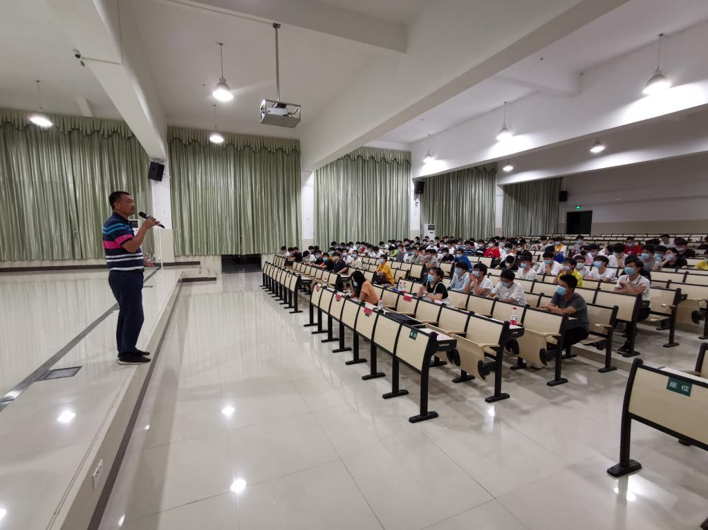 桂林市临桂区人民武装部政委王晓忠首先为同学们做动员。他介绍了部队的训练生活,强调大抓实战化军事训练。同时,王晓忠分别从衣食住行、基础设施建设以及多元化的理论培训等方面,为同学们详细讲述了部队的生活,引导同学们正确理解部队的“严格”和“人性化”管理。他表示,在新兵的管理上,允许有适应和接受的过程,无论生活习惯的改变,还是作风纪律的养成,都要循序渐进,逐步提高。同时,他引用十九大报告中“让军人成为全社会尊崇的职业”和介绍经济优待政策,为同学们算了两笔“账”。他表示,军人为国家和社会提供安全保障,理应获得崇高的社会地位和相应的荣誉奖励。最后,他以杨炯的《从军行》结束讲话,号召在座的青年投身军营,携笔从戎,报效国家。