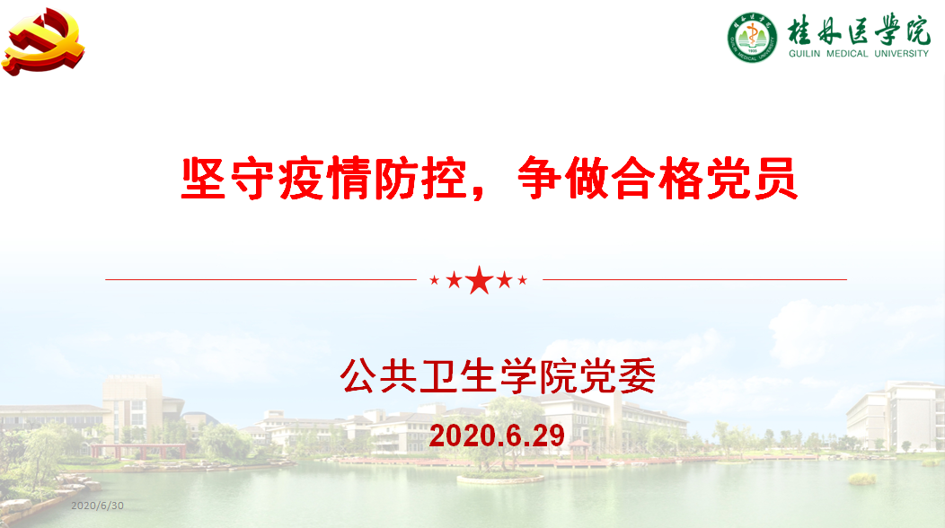 根据学院党委疫情防控教育学习安排,公共卫生学院党委于5月29日下午在党员之家开展“坚守疫情防控,争做合格党员”疫情防控微党课教育活动。党课由谭盛葵书记领学,公共卫生学院教工及学工党支部全体党员参加了微党课活动。