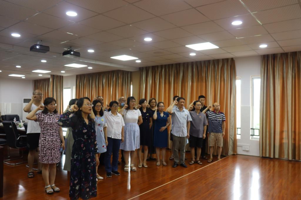 全体党员高举右手,面对党旗,重温入党誓词,思想再次深刻洗礼。大家表示将始终铭记入党誓言,不断鞭策和激励自己,为党育人,为国育才,奋斗不息,永葆共产党员先进性。