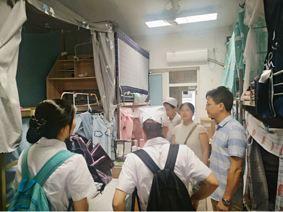 为强化“三全育人”功能,推动宿舍文化建设,进一步提高学生对桂林市创建全国文明城市的知晓率和参与率,发动学生共同参与到创城工作中来,9月7日下午,护理学院党委副书记谢勇志,班主任黄姣娥老师和学生干部代表对2018级卓越护士班宿舍进行文明创建走访宣传活动。