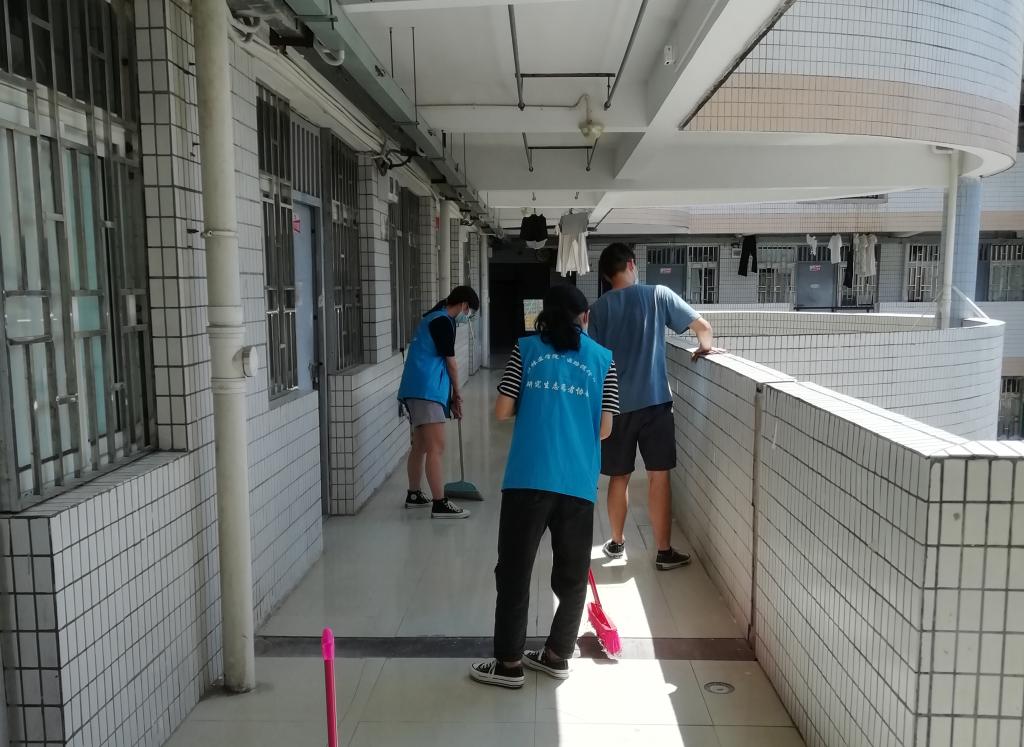 研究生各志愿小组按照分工,清理宿舍楼外垃圾、打扫楼道、擦洗扶梯、清除小广告;各班级同学积极清洁宿舍内务卫生,阳台、厕所各处不留死角。同时对东城、临桂两校区宿舍内的安全隐患进行了排查,确保“创城”各项工作落到实处。