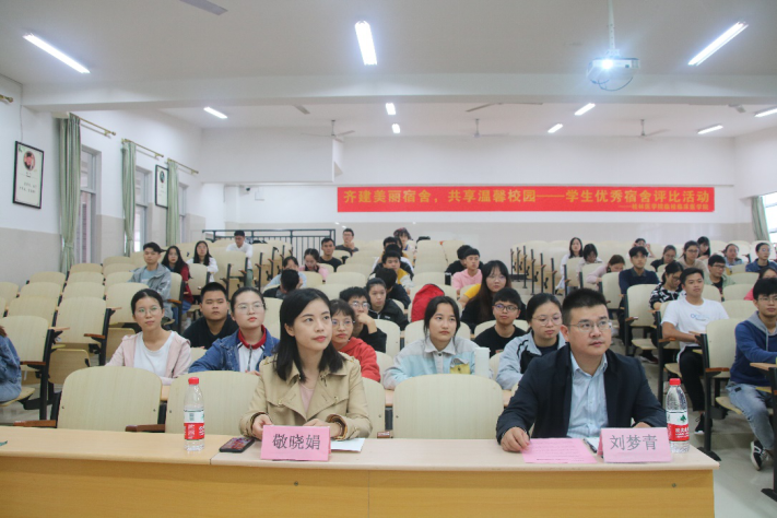 活动伊始,刘梦青从良好的卫生是健康的保障,舍风建设是良好学风养成的基石,舍风维系有助于同学自律的养成三个大点切入,充分阐述了舍风建设的重要性,强调了舍风建设是一个需要坚持的,并应该不断完善的事情。刘书记希望把这次宿舍评比活动整合优化,打造出一个具有本院特色,联动本院建设工作的品牌活动。同时,他还希望我院能以宿舍舍风建设结合综合素质培养为标准,推选出一批舍风、学风优良的榜样宿舍,促使其余宿舍向榜样看齐。随后,活动现场播放了由本次宿舍评比检查剪影与部分优秀宿舍风采照片组合而成的视频,展示了我院对舍风建设做出的努力与成效。最后,主持人宣读了优秀宿舍名单,嘉宾为获奖宿舍颁发奖状以及礼品。