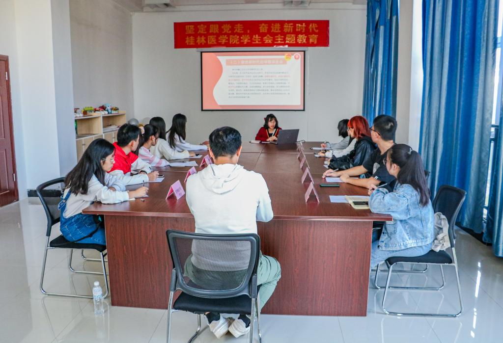 10月25日下午,桂林医学院学生委员会在临桂校区大学生活动中心207会议室召开“坚定跟党走,奋进新时代”主题教育座谈会,与各二级学院学生会代表集体学习了习近平总书记致全国青联十三届全委会和全国学联二十七大的贺信精神。会议由校学生会宣传部部长李婷同学主持。