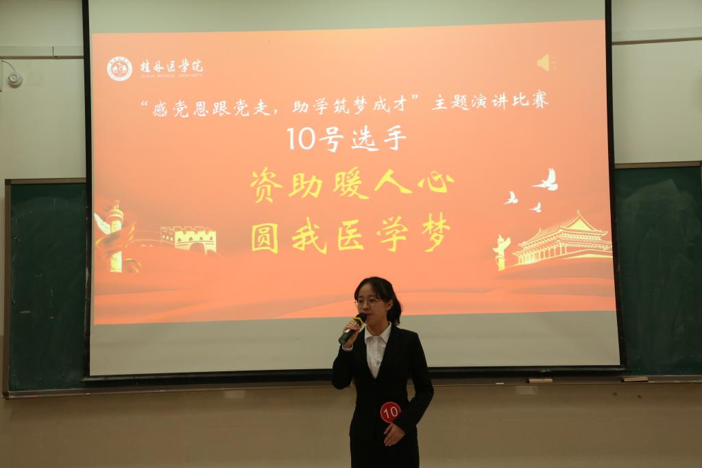 经过二级院级选拔及推荐,共有17名选手入围校赛,在演讲比赛中,选手们用朴实而真挚的情感、流畅而生动的语言讲述了各自成长路上的动人故事,表达出在党和国家资助政策支持下,坚定信念、知恩感恩、自立自强,努力成为堪当民族复兴重任的时代新人的信心与决心,台下的观众不时为他们送去阵阵掌声。最终,评选出一等奖1名,二等奖3名,三等奖3名,优秀奖10名。刘燕对场上选手的优异表现给予了充分肯定,同时鼓励全体学生以党史学习教育为契机,积极参与此类活动,感党恩跟党走,从百年党史中汲取精神力量,不断磨砺意志品质,展现出桂医学子良好的精神风貌。