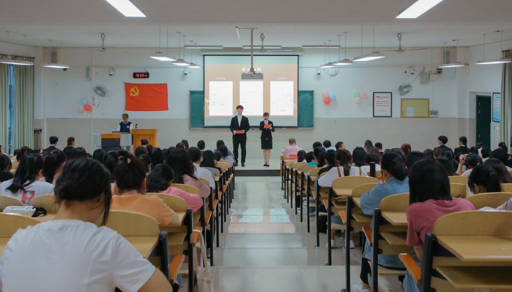 为庆祝建党100周年,培育受助学生的爱党爱国情感和感恩意识,进一步推进我校学生资助政策宣传工作,我校于5月6日晚在教室南楼举办“感党恩跟党走,助学筑梦成才”主题演讲比赛。校党办院办副主任骆泽盛、宣传部副部长刘燕、学工处副处长朱四化、党办院办张凯惠老师、校团委陈文颖老师、学工处莫荣妹老师出席本次比赛并担任评委,各院系老师代表及学生代表200余人参加了本次活动。